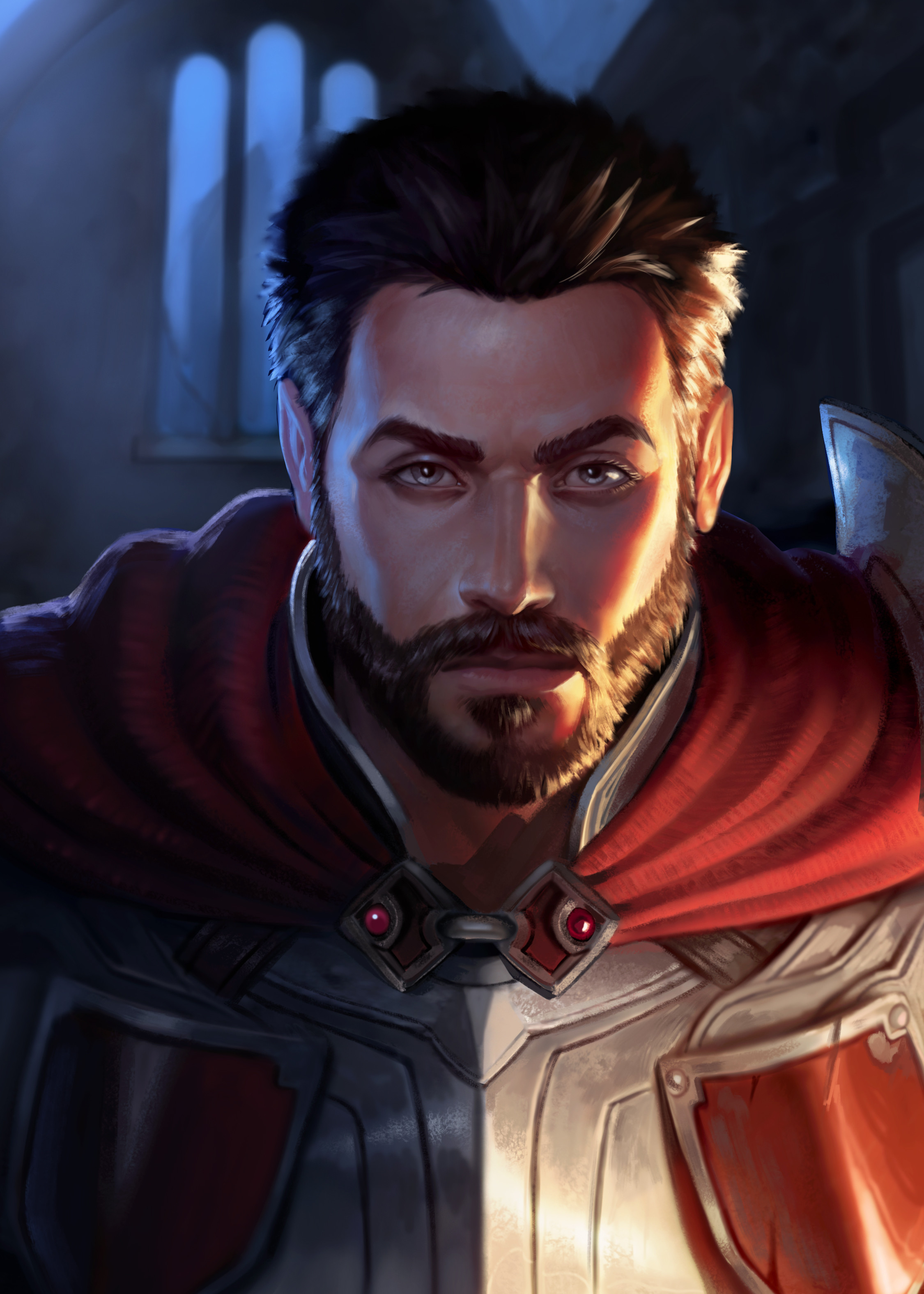 Chevalier Solmanique, engagé sur le terrain contre l'armée du dragon bleu.