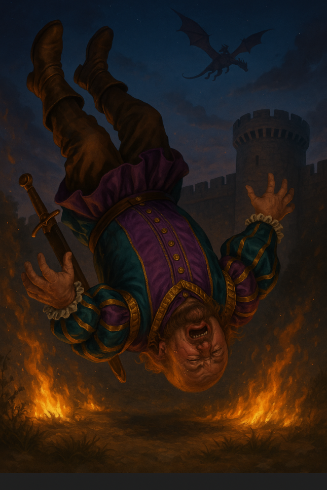 Valeria Noirmanteau pourchasse sur son dragonnel le gouverneur indigne et après quelques tentatives parvient enfin à l'attraper et à l'amener en l'air. Lord Bakaris dit qu'on lui a demandé de trahir mais il prétend avoir voulu jouer double jeu. Il montre une lettre à Valeria en lui disant qu'il s'agit d'une preuve... En effet la lettre vient de Bakaris le jeune qui dit s'être fait une place dans l'armée ennemie et invite son père à le rejoindre.