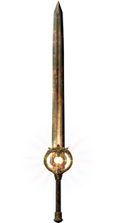 This weapon appears as a golden longsword with a brightly glowing gem, like a small star, within the crossguard of the sword. Attunement by a follower of Meridia is required. Attunement to this weapon reveals that there may be more to it in time.