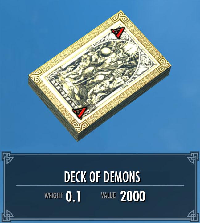 The Deck of Daemons is a 13-card deck, alike a suit from a regular playing card deck, and is considered to be one of several decks under the grander Fate Cards collection.