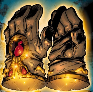 Unos guanteletes mágicos de manufactura enana, proporcionan a su portador una fuerza y resistencia sobrehumanas. Las dos enormes gemas rojas que parecen ser la fuente de su poder están rodéadas de runas enanas. Estas runas parecen contar la historia de un heroe legendario llamado "Aramus".