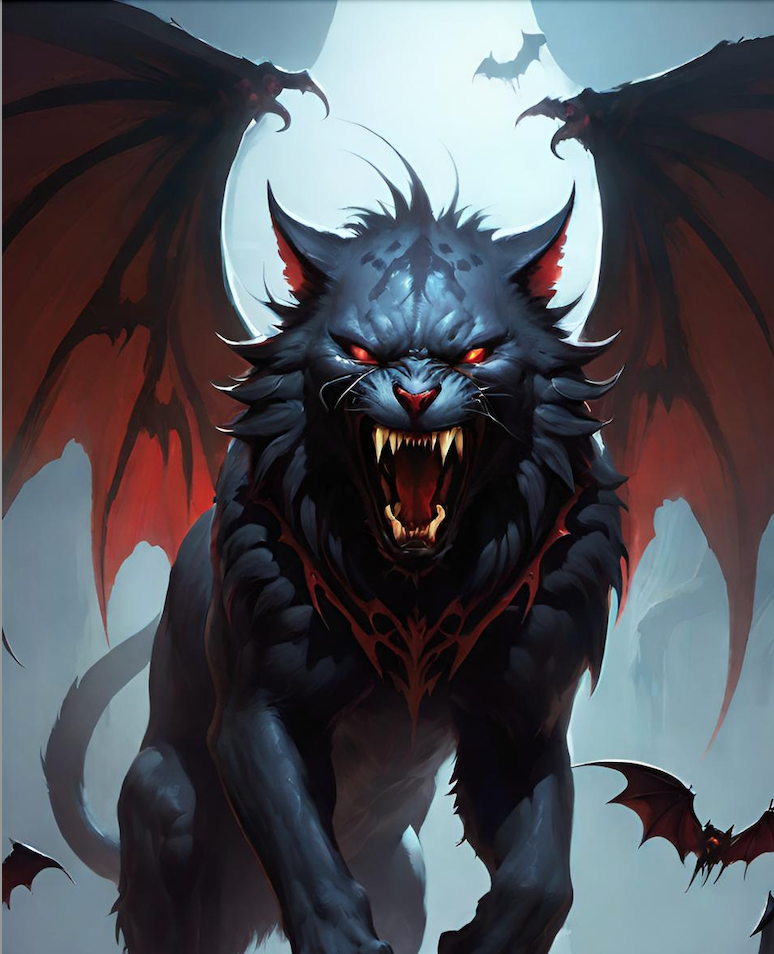 A Tressym turned into a vampire by the party using the Vampiric Blood Infuser.