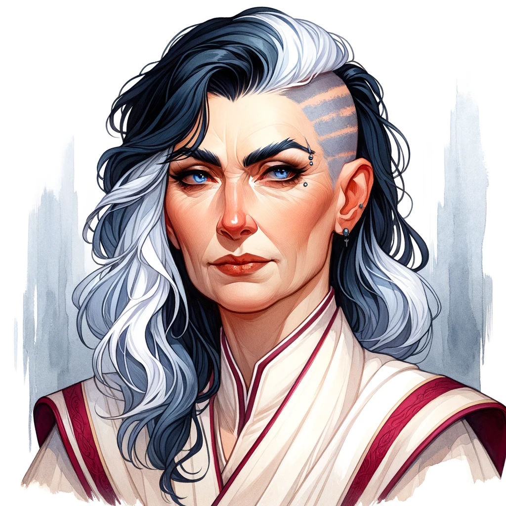 An amnesiac warrior trained to use rapier and pistol; she travelled with Johannes Kal and the Company of Steel for a few years before finding herself staying at the Abbey of the Unnamed One where she was bestowed with divine power by the Unnamed God of Sky and War.Through her adventures Aria discovered that she was a member of the Wren family and the older sister of the groups' enemy - Sabine Wren. The sisters reconciled and worked together to stop Enyalius, however, Sabine Wren was seemingly killed in the conflict.