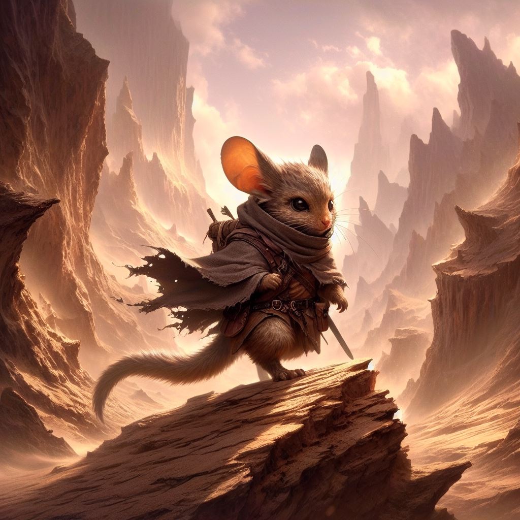 Jerbeens are small mouse-like folk with long, furred tails that help them balance. In proportion to the rest of their body, a jerbeen's legs are long and powerful. Jerbeens can be found in a variety of places across the Wood, usually forming their own communities within birdfolk perches and humblefolk villages. Seldom do they live alone. A jerbeen's home can contain several generations, including extended family and cousins living together under one roof. Jerbeens have a strong sense of family and like to surround themselves with good company wherever they rest.