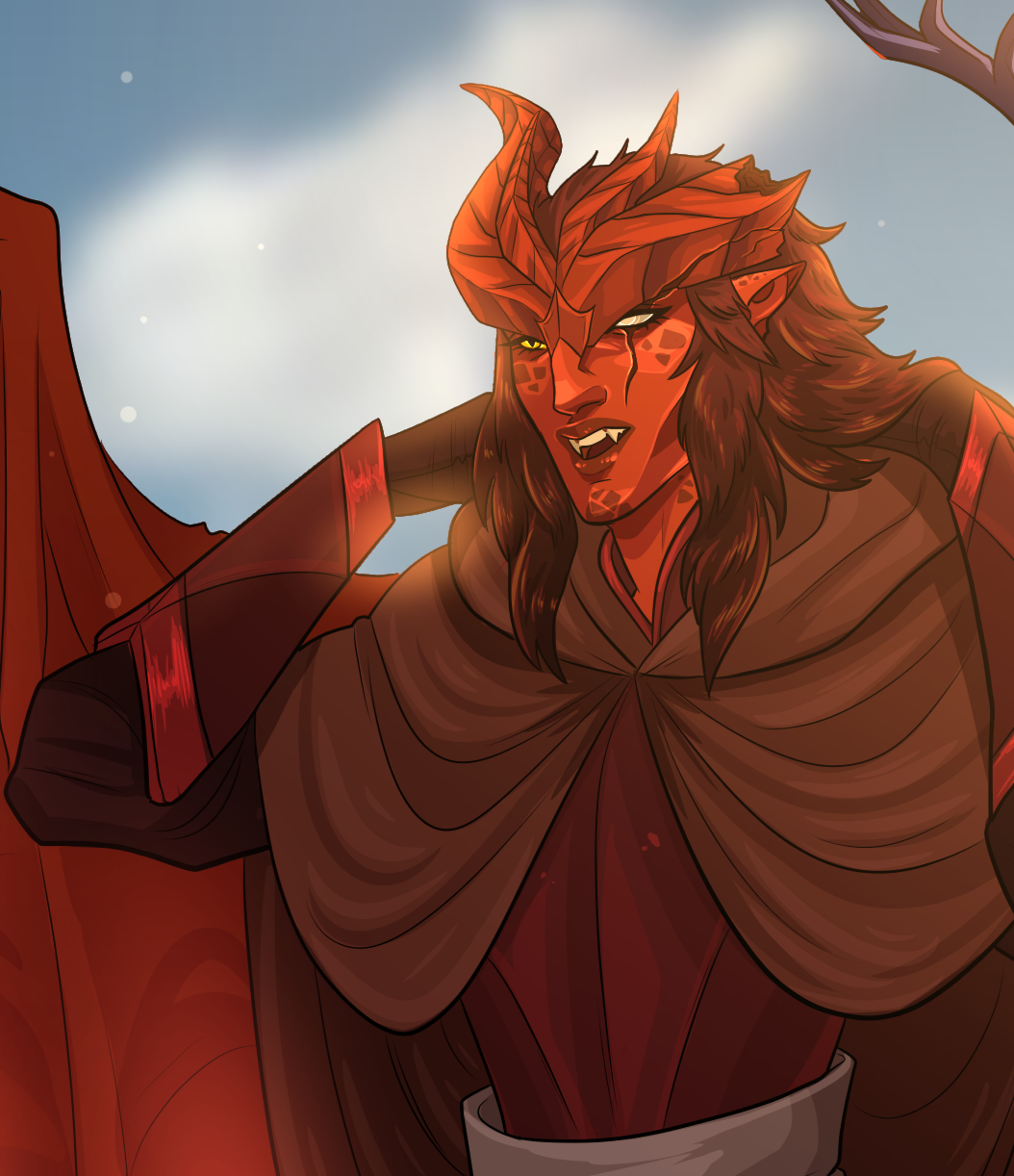 Red is Victorie's older sibling, and a sword-for-hire working with the Veridian Society and Viktos Kuovis. She has very strong fiendish features, and keeps out of the public eye when she can, as she has two large leathery wings, a rarity even among tieflings that reveal her as a half-demon. Her face is clearly marred, and she's missing one of her eyes and half of a horn. Like Viktos, she shares strange draconic features such as scales and clawed hands, akin more to a dragonborn.
