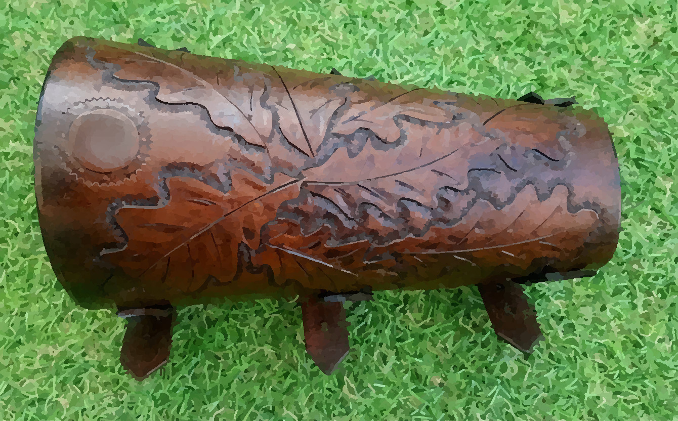 These bracers are light weight and made of leather with an inlaid pattern of leaves blowing in the wind.