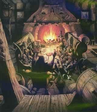 Gruff le boiteux est chargé du rayonnage de la boutique et comme il est boiteux et grincheux, cela donne toujours à la Mandragore plaintive cette allure de capharnaüm permanent. Il y a toujours du passage dans la partie de la demeure servant d’ambassade, il y entre et y sort une quantité de gnomes déconcertante.