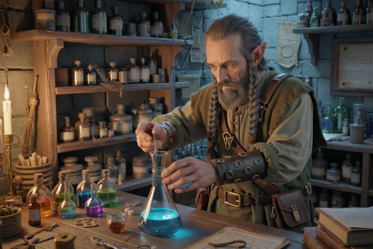 Néanmoins, ces derniers temps il s’est rapproché, bien malgré lui, des gens de sa communauté. En tant qu’apothicaire, il lui arrive de fréquenter la Mandragore Plaintive l’herboristerie gnome d’Eliandrilh.