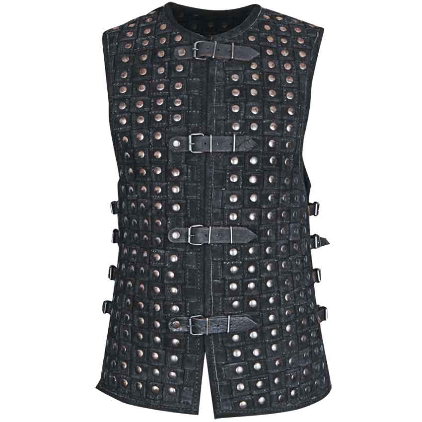 This evolution of a Gambeson interlaces small metal plates, held in place with rivets, in between the layers of cotton. It is much harder to move in, admittedly, but it is also much better at being actual armour.