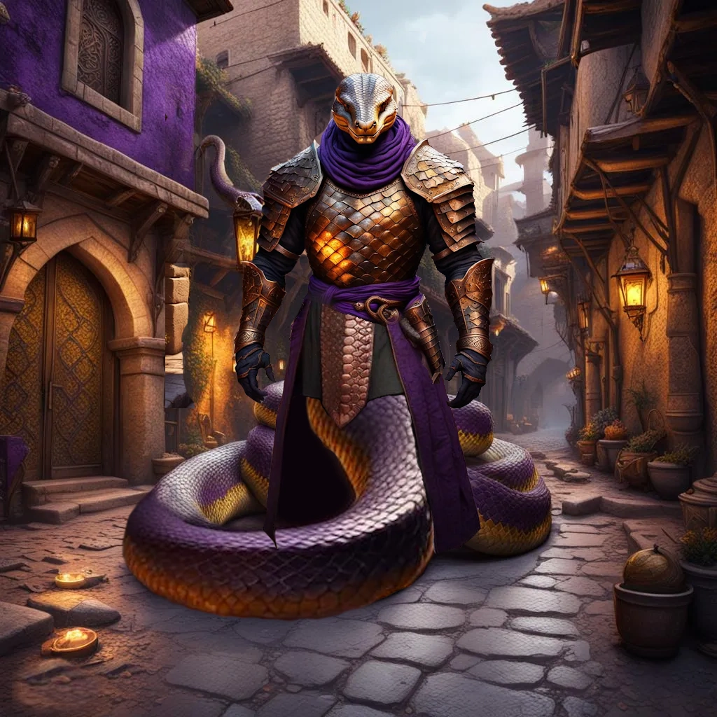 The Nagi are one of the more visually unusual races of Orth. Resembling snakes with a humanoid upper torso and arms but retaining the snake-like head, the Nagi are huge, visually striking and intimidating. Scale patterns are highly individual and often unique from Nagi to Nagi. They are one of the most diverse races in the world, with dozens of different variations even amongst the same populations. While some have the hoods of cobras with others may have the horns or pit vipers. There are many more variations.