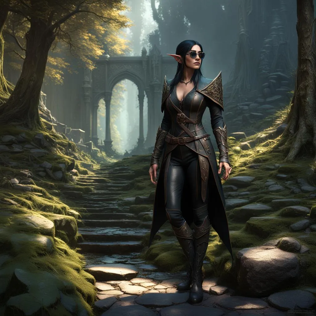 Having adapted to life underground with next to no visible light, the Dark Elves have eyes that give them the best night vision of any race on Oerth. Their distinctive indigo eyes are adapted to take in as much light as possible, and they have a reflective layer at the back of their retina similar to that of a Catfolk. This makes them able to see perfectly in near-absolute darkness but also makes their eyes incredibly sensitive to light to the point where normal outdoor light levels are blinding and in fact can cause permanent optical damage; due to this, any Dark Elves making a trip or living above ground will wear a pair of face-flush wrap-around glasses with black quartz lenses during daylight hours to reduce the amount of light reaching their eyes to a safe level.