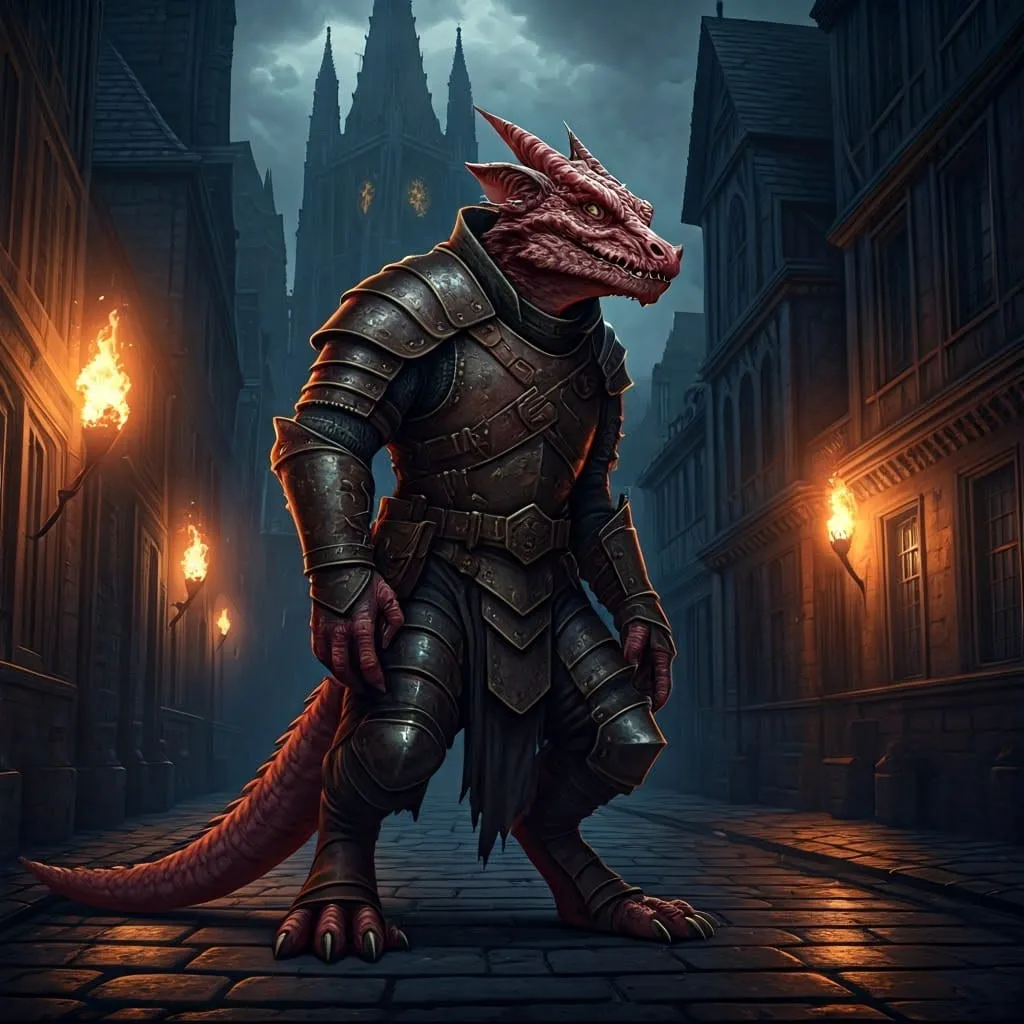 General Description: Kobolds are probably one of the oddest sapient species on Orth. They are small reptilian creatures with a somewhat bird-like gait, thin digitigrade legs and long tails. Their faces are somewhat draconic, with a long thin snout similar to that of a crocodile, sharp teeth, large eyes, and small horns atop their heads or sometimes fins along the back of their heads. They have larger protective scales around their mouths, hands, feet, eyes and along their undersides that vary in colour between individuals across various shades of reds, blues, greens and yellows, but are usually a paler colour than the small almost snake-like skin covering the rest of their bodies, which is usually a darker shade of the same.