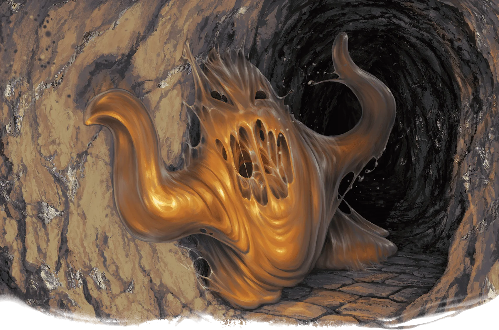 Plötzlich sehen wir ein seltsames Schleimmonster, das von hinten angreift. Wir sind jedoch nicht überrascht. Nach einem harten Kampf beendet Imane den Schleim mit einem frostigen Chromatic Orb. Es handelt sich um einen Ochre Jelly. Yentumil teilt das Monster in zwei Teile mit seinem Schwert, was nicht hilfreich ist. Wir besiegen das Monster.