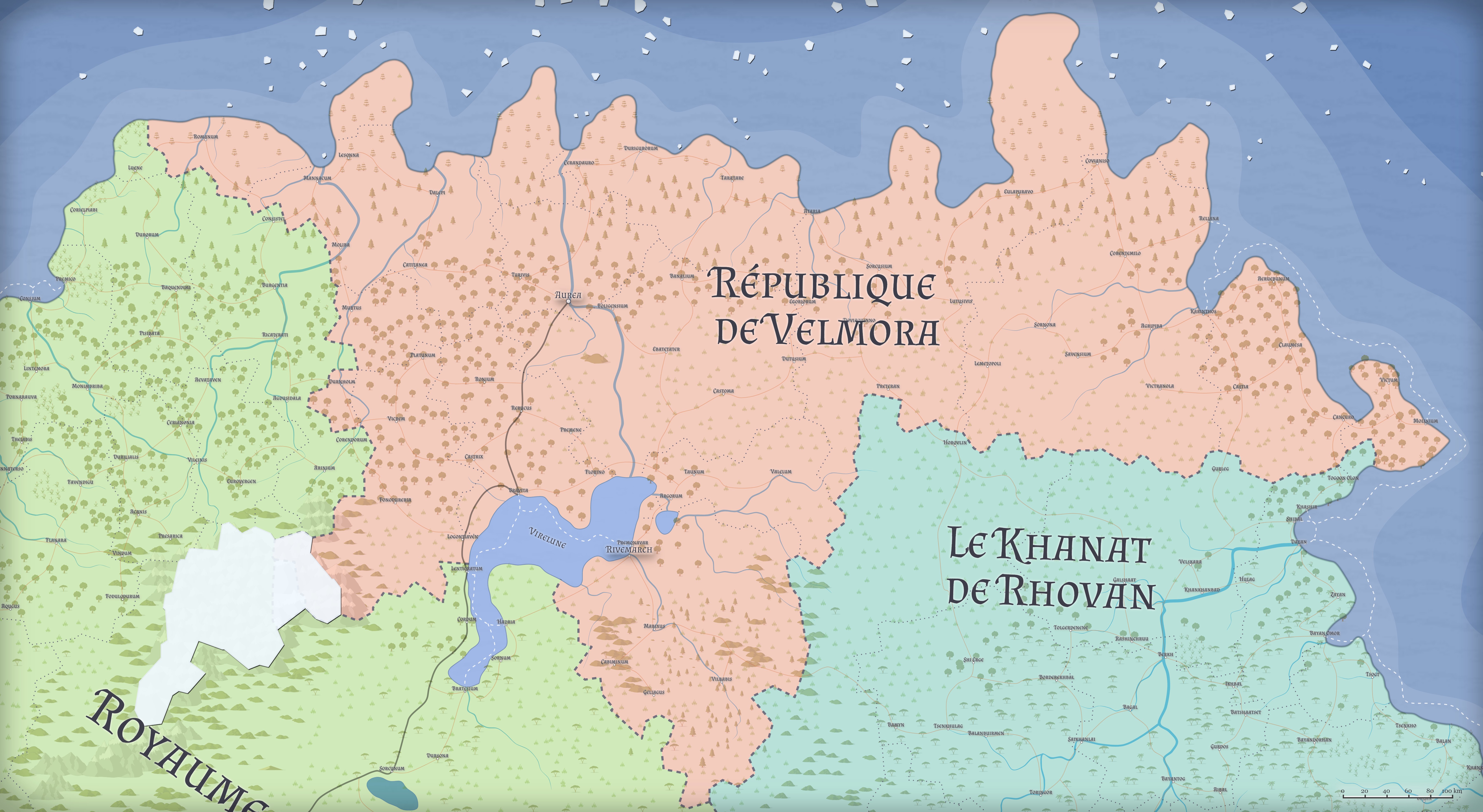 Située au nord du continent de Valderis, la République de Velmora est une nation prospère où le commerce, le savoir et la diplomatie sont érigés en piliers.