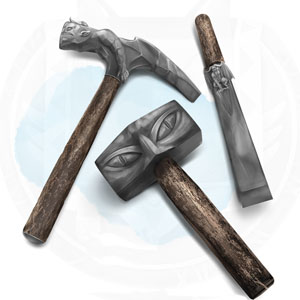 Las herramientas de albañil constan de una paleta, un martillo, un cincel, cepillos y un cuadrado.