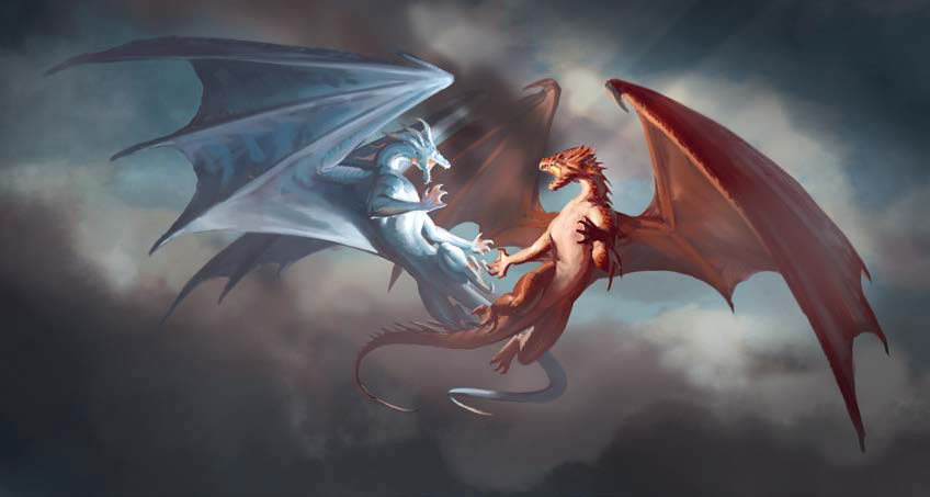 Los dragones son criaturas de la antigüedad que habitaron Voldor mucho antes de que los Peregrinos fijaran su vista en este planeta, o al menos eso creen ellos. Lo cierto es que fueron los reyes del mundo durante milenios hasta que llegó la raza de las estrellas. Poseedores de una cultura ancestral, adoraron a dioses hace largo tiempo olvidados y hablaban una lengua propia. Lucharon fieramente contra los Peregrinos durante centurias, pero con el tiempo sus fuerzas fueron decreciendo. Los dragones siguen siendo poderosos, temidos y respetados por las nuevas razas, pero cada vez son menos, aun mucho después de la partida de aquellos que desfiguraron un mundo que ya no reconocen.