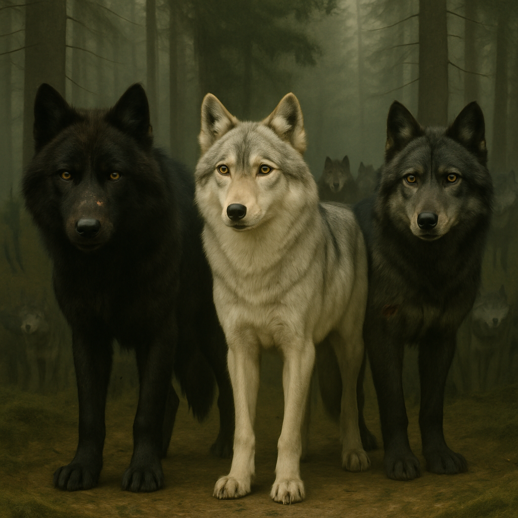 La meute du Mont Saint‑Bruno compte cinq loups gris, menée par Crocs-de-Givre. Leur territoire s’étend autour des bois sombres et des lacs du parc, entre érablières et rochers moussus. Discrets, rarement vus par les humains, ils vivent à l’orée d’une ville qui s’avance toujours plus. Leurs hurlements résonnent parfois jusque dans les sentiers, échos sauvages rappelant que la forêt n’a pas encore cédé entièrement à la civilisation.