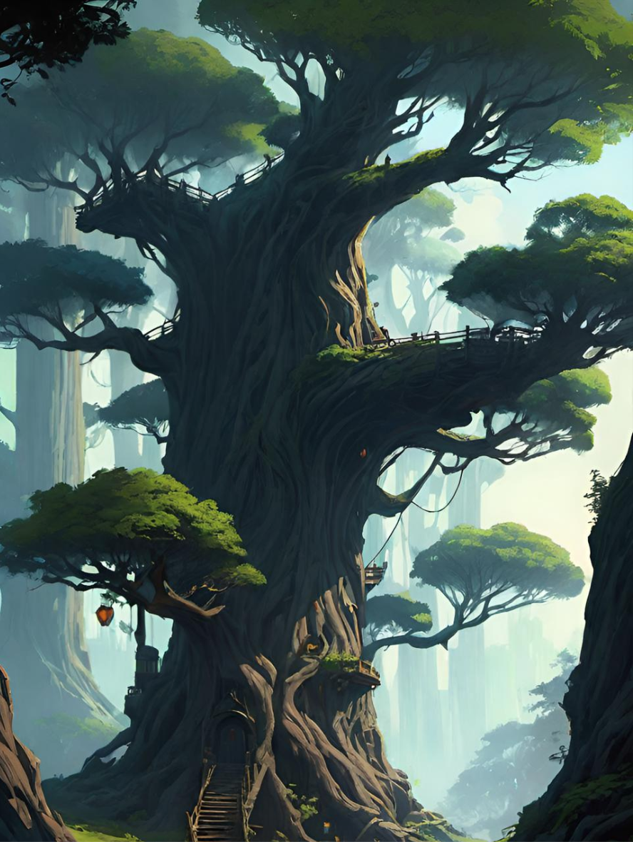 The Realm of the Canopy consists only of a canopy of a forests of gigantic trees that grow within the empire of Miradorium. These gigantic trees known as Magnum Arbours are large enough that a whole civilisation including buildings and walkways can exist within its branches.