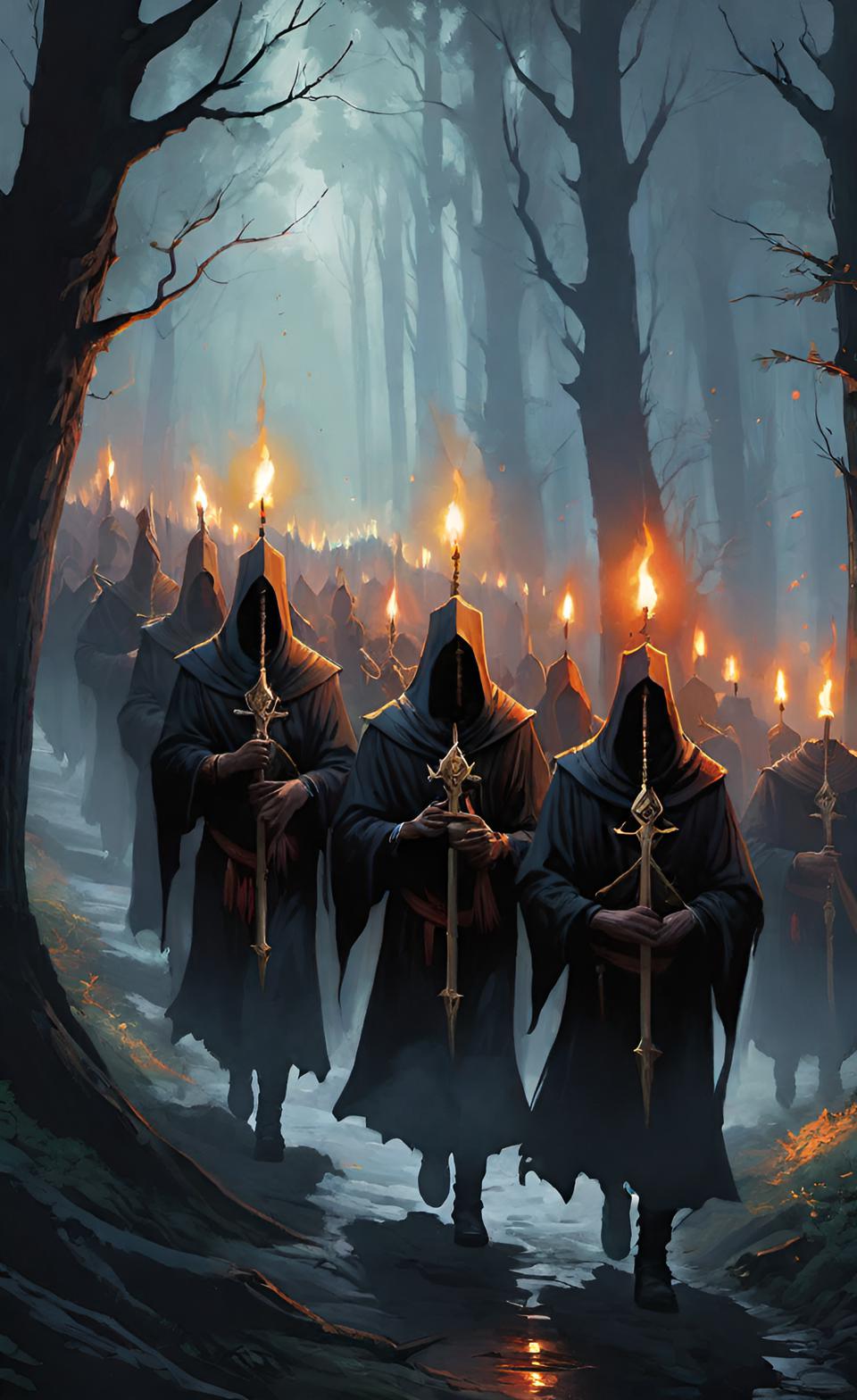 A forested precinct dotted with Chanteries and scriptoriums. The monks and nuns here specialise in preserving fragments of lost chants, incomplete and therefore practically useless they never the less safeguard the fragments. Also known for its Ember Procession where thousands carry candles through the woods.
