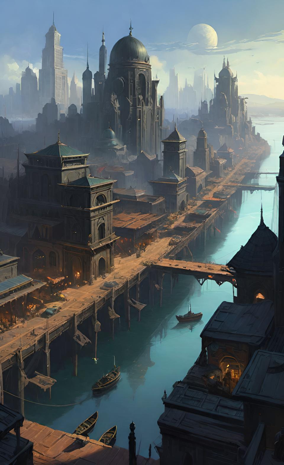 A sprawling city district that serves as the empire's black market capital. Anything can be bought here if you know where to look. Known for its gambling tournaments, its "Free Docks" where contraband arrives, and thieves are officially regulated.