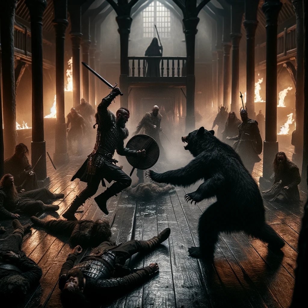 Ragnar Meliamne was captured by mercenaries hired by Lord Edward Brown and knocked unconscious. He awoke in a cell, where he met Pedrus Black, the well-dressed younger brother of Jacob Black. Pedrus explained that he had been captured while following his brother to keep him safe. Ragnar managed to escape his cell, but encountered two guards, whom he burned with a spell. As he fled, a figure emerged from the flames and stabbed Ragnar with a strange sword, causing him to feel his life fading. Pedrus joined Ragnar, and they made their way through a field of burned bodies, where they were attacked by a black bear. During the fight, Ragnar fell unconscious.
