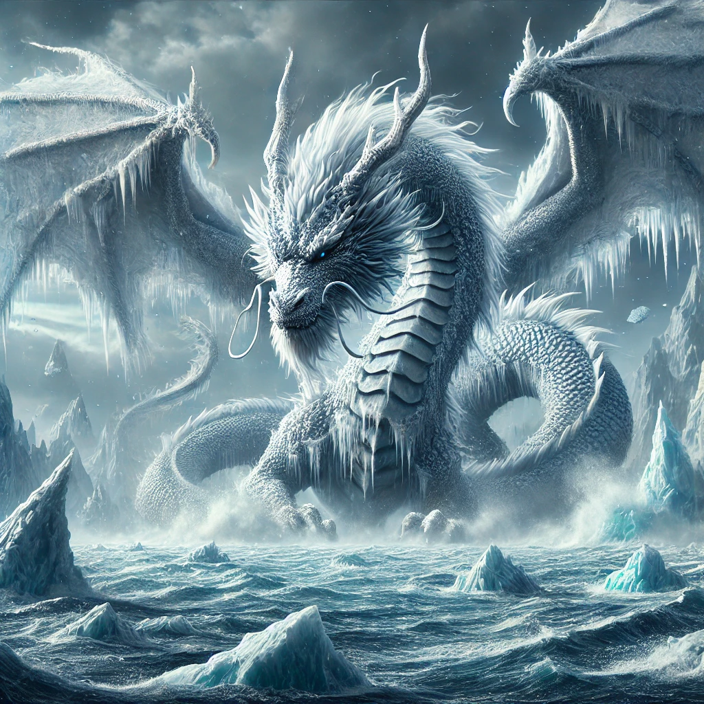 Ao Shun rules over the Northern Arafora Sea, where the waters are frigid, ruthless, and unyielding. He governs icebergs, glacial tides, and the endurance of those who brave the cold abyss. Unlike his more temperamental kin, Ao Shun is stoic and patient, embodying timeless wisdom and the slow, unrelenting power of nature. He is depicted as a white-scaled dragon with frost-covered wings, his breath freezing the air itself. Worshipers—often seafarers of icy regions and survivalists—leave offerings of bone, carved ice, and whale oil to seek his favor.
