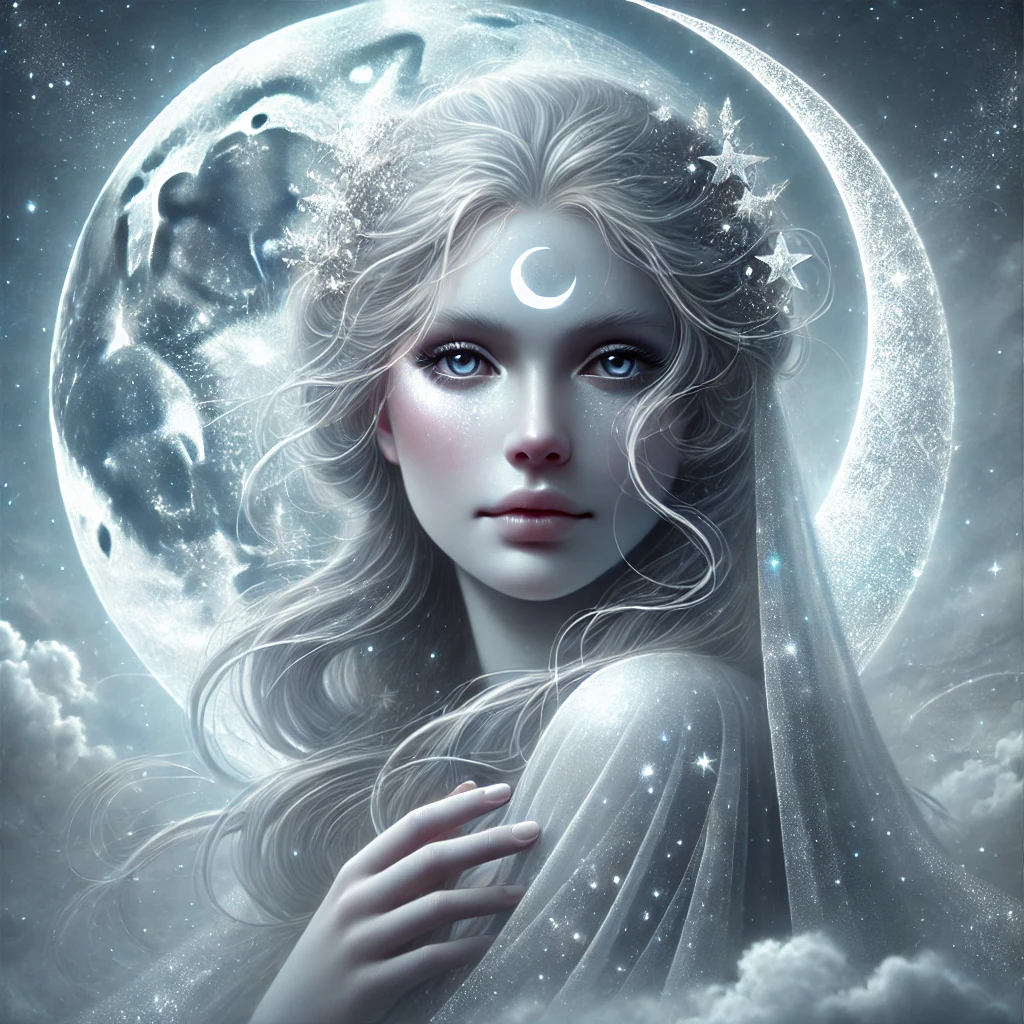 Xiknos, also known as the Moon Maiden, and the Night White Lady, is the Goddess of the Moon in the Celestial Pantheon. She holds the portfolios of the moon, stars, navigation, navigators, wanderers, questers, seekers, and non-evil lycanthropes. She held the mysterious power of the moon, the celestial force that governed the tides of the world and a mother's reproductive cycles, causing lycanthropes to change form and bring one to the brink of madness and back again. Her nature, appearance, and moods all changed in turn with the phases of the moon.