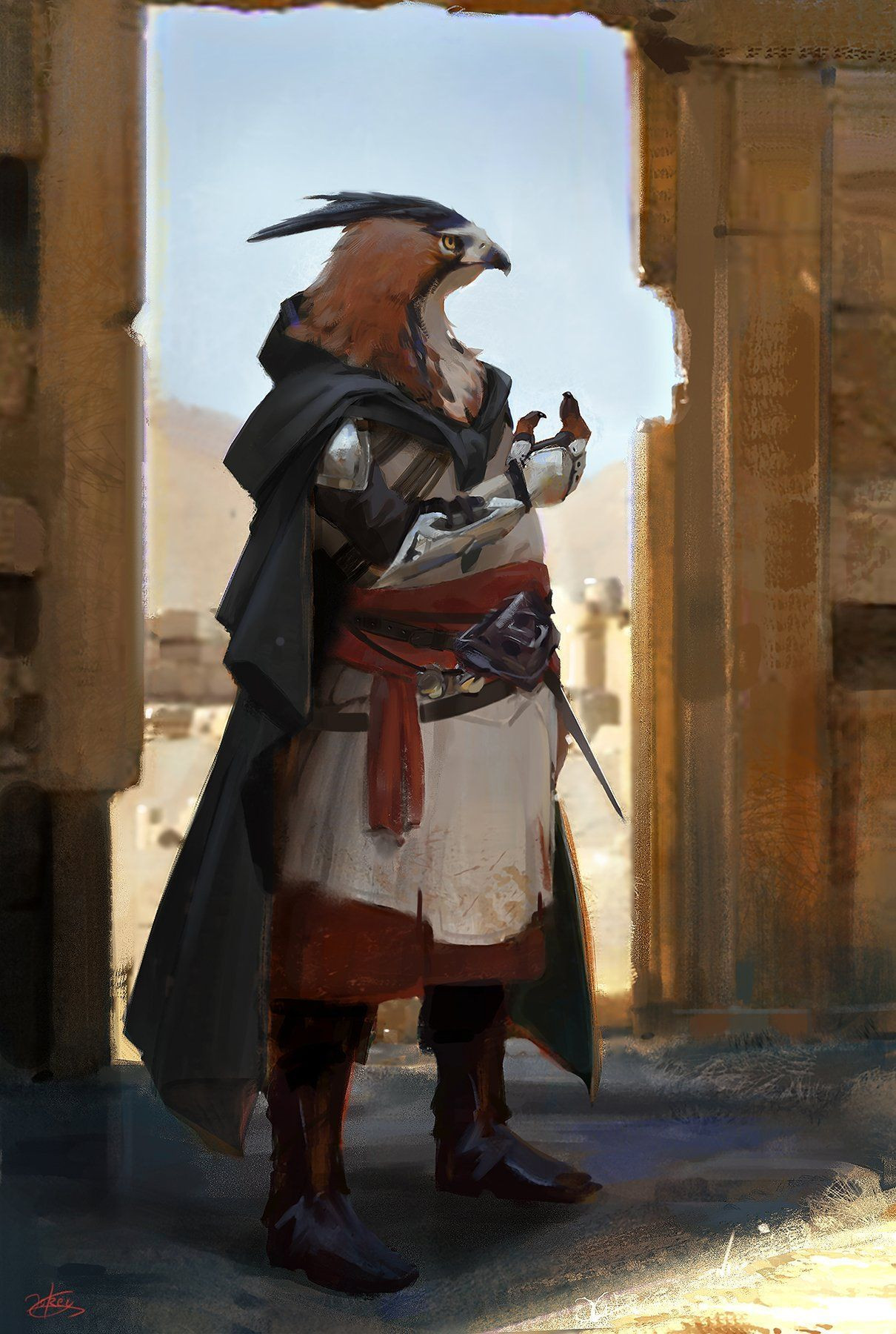 The Kenku are avian humanoids, they are similar to the Aarakocra, but with the noted exception that they lack wings. They typically come of age at 20 years old and typically live to be 120.