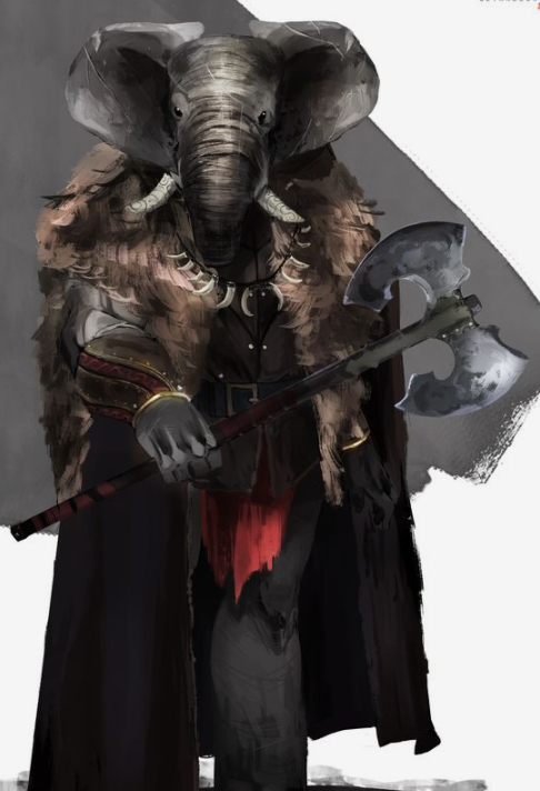 Loxodons are humanoids who resemble elephants. They age slowly and live long, coming of age at 60 and typically living to be 450 to 500. They are incredibly tall, typically standing between 7 and 8 feet tall.