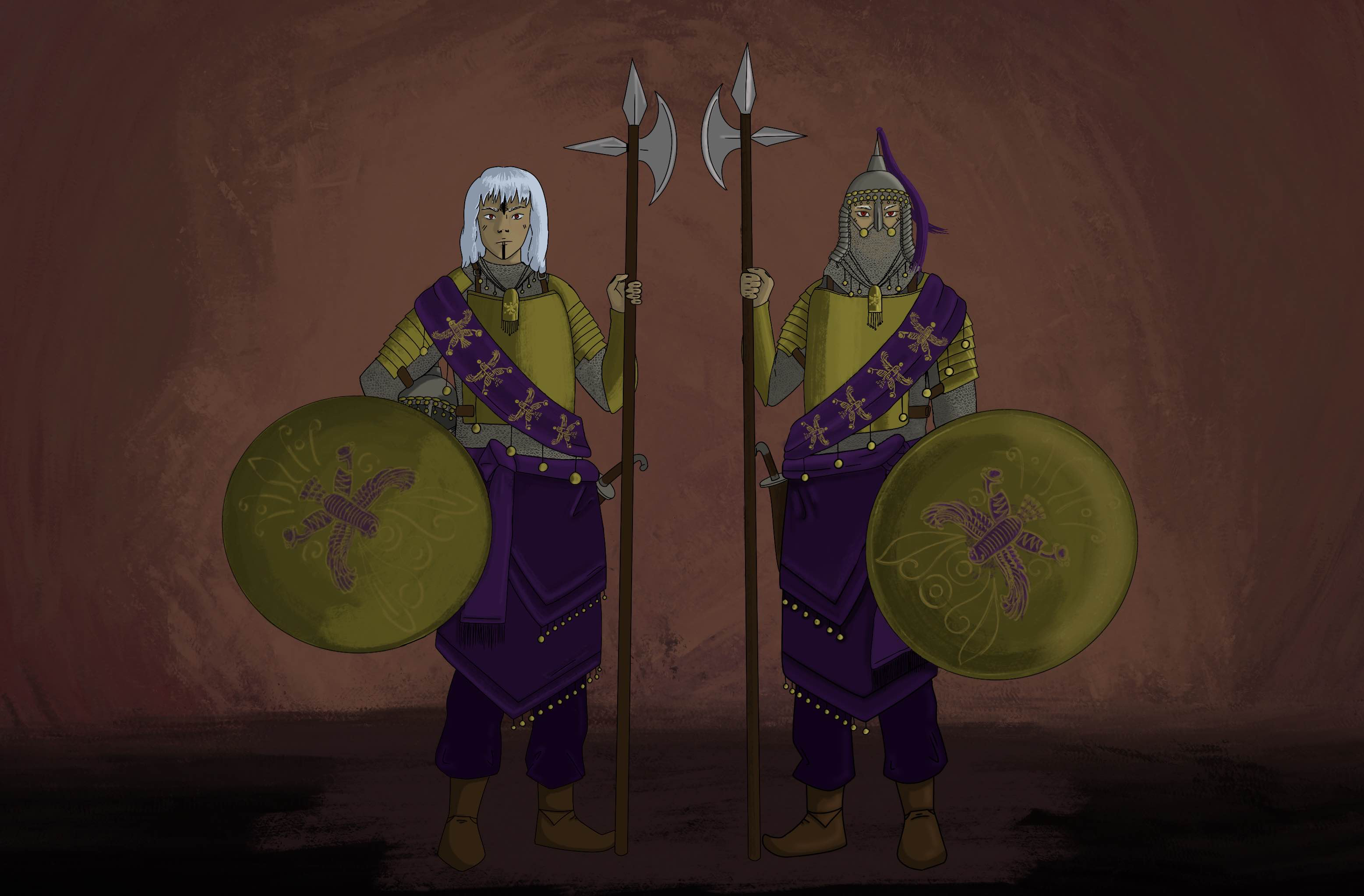 The Yrsh'hadin, derived from Celestial for "Risen Immortals," are the elite personal soldier-fanatics of the Shahanshah. They are the most elite soldiers of the Empire, sourced from the Empire's prisons, orphanages, and skilled and loyal soldiers in the ranks of other armies. It is said that a single Yrsh'hadin can annihilate as many as twenty conscripted men-at-arms with ease. Of all the adherents of the Imperial Faith, the Yrsh'hadin are the most devout and most willing to die for their Shahanshah.