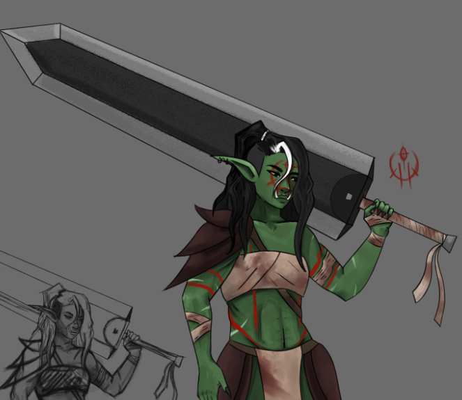 Naf'na is a Half-Orc barbarian and member of Kingly's Kings. She hails from the land which was formerly known as the Byuntun Empire.