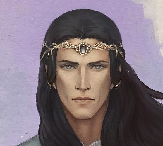 The crown, like the crowns of the other Great Elvish Kings, was designed and created by the great smith Elgarion. It is a pale gold circlet designed with elegant spirals and shapes with a blue sapphire inlaid in the front.