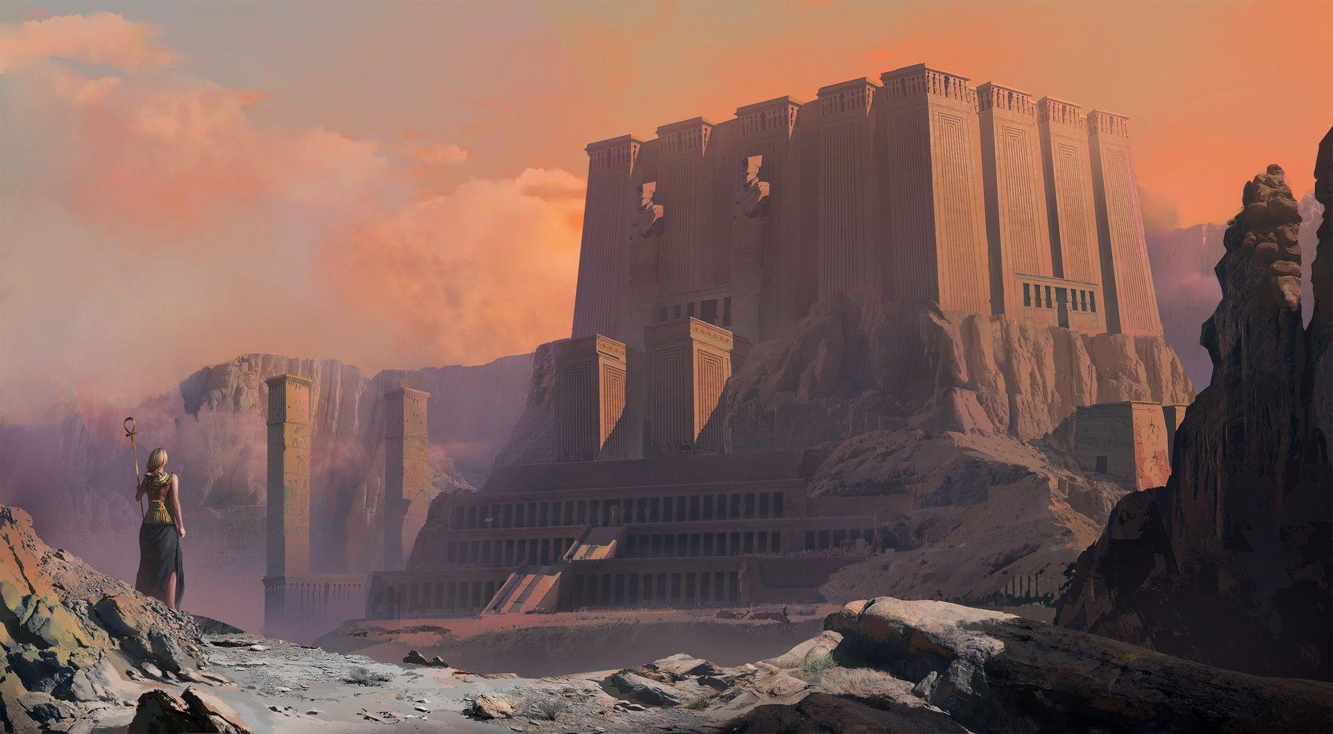 Raw'mynt-at (Nemishite for "Infinite House") is an unexplained castle of Nemishite origin located in the Orange Mountains near the Ba'hram Desert. The castle is of unknown origin, as even at its furthest reach, the Nemishite Empire did not rule the land which the castle sits on. Current hypotheses hold that it was founded by Nemishite pilgrims as a fortified temple complex, growing over time in size and power until it was eventually abandoned sometime in the later Fourth Age, perhaps due to the Nemishite Empire's decline. It and its surrounding lands were purchased by Galka the Infinite, becoming the seat of Clan Leshnah. It is the capital of The Purchase.