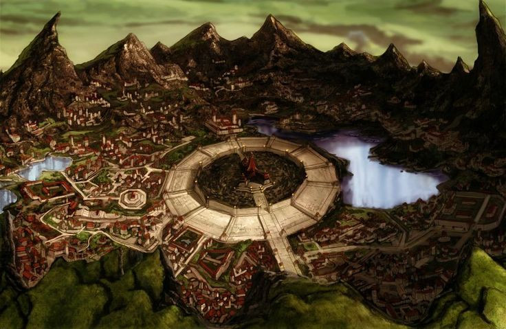 They call it the City at the Heart of Fire, and there could not be a more apt name. You can feel the energy in the air. Fires burn hotter here, and brighter. Pyromancy is commonplace here, and the people all have fiery orange eyes. This is to say nothing of the natural beauty of the land. The crater rim crests the city like fingers reaching to close a fist and the volcanic heat creates warm springs perfect for bathing.