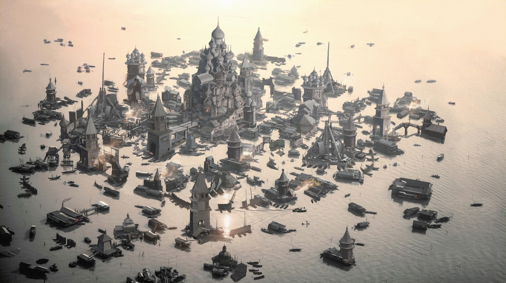 The Lake Town is the largest settlement of Y'kanos. As the name suggests, the town is built on a lake on stilts, providing protection from attacks. Its location downstream from the mountains of Fangardh has made it a frequent site of trade between the Silver Elf and people of the Y'kanos.