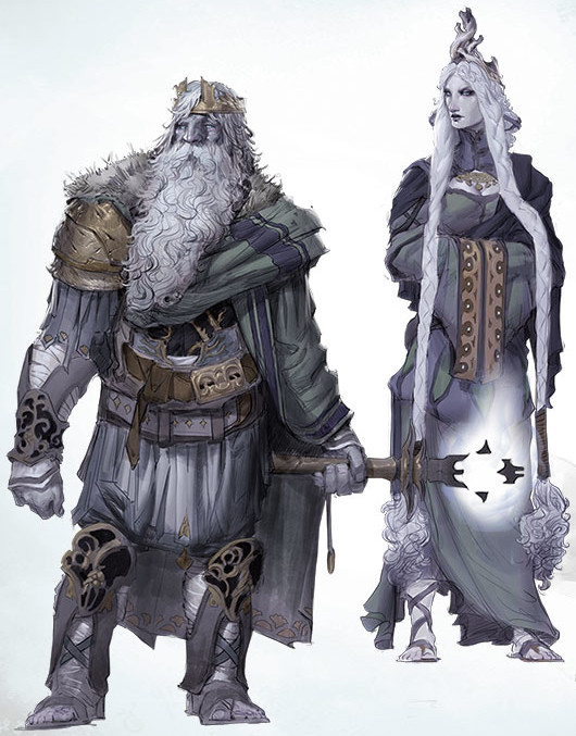Cloud Giants are the most intelligent of the Giants, possessing intelligence on par with Beldkind. They are organized into more sophisticated civilizations, living in city-states upon the clouds of the World's Eye, as these clouds are largely static and unchanging.