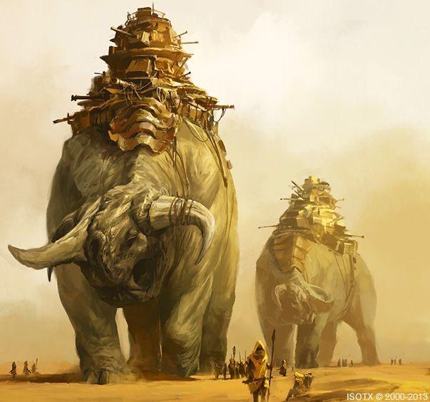 Anqall (meaning "mover" in Ba'hramic) are a gargantuan mammalian megafauna native to the Ba'hram Desert. They are migratory and passive creatures, wandering in seemingly random paths around the Dune Sea of the Ba'hram towards oases.