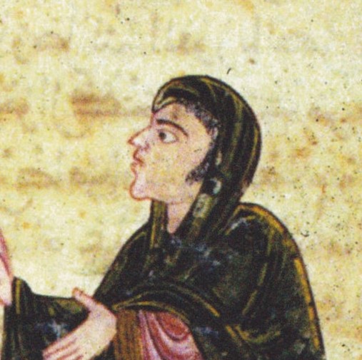 Sardaf'ya (right) dictates a text to one of her students or scribes