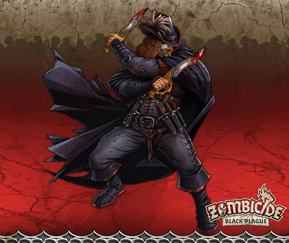 Autrefois connu pour ses pièces et poèmes imaginatifs et anti-établissement, le barde appelé Asmodée a tourné son esprit barbelé vers la horde verte avec passion. Ce n’est pas que les zombies comprennent ses paroles au combat, mais ils possèdent une cadence et un flux qui attirent ses compagnons survivants, leur permettant tous de se battre presque comme un seul. Asmodeus n'est jamais vu sans son masque souriant, et la rumeur veut qu'il ait été horriblement défiguré dans les premiers jours de la peste noire. Lorsqu'on lui demande, Asmodeus lui-même sourit simplement et reste, comme toujours, une énigme.