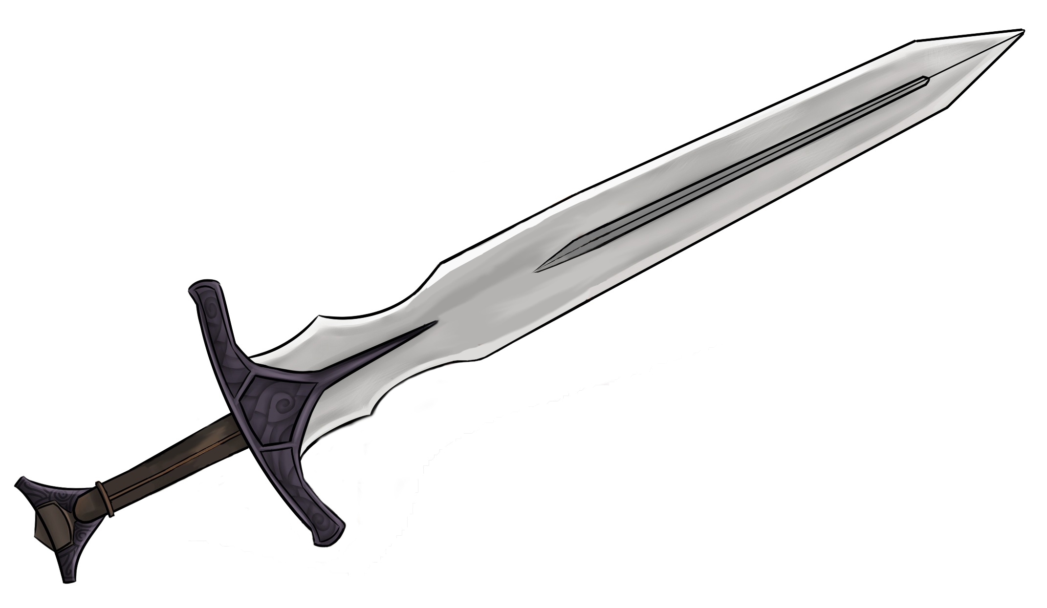 This sword is warm to the touch, the metal parts of it gain a bluish-silver hue and sigils of blue flame cover its surface. Shades of blue and silver are the prominent colors.