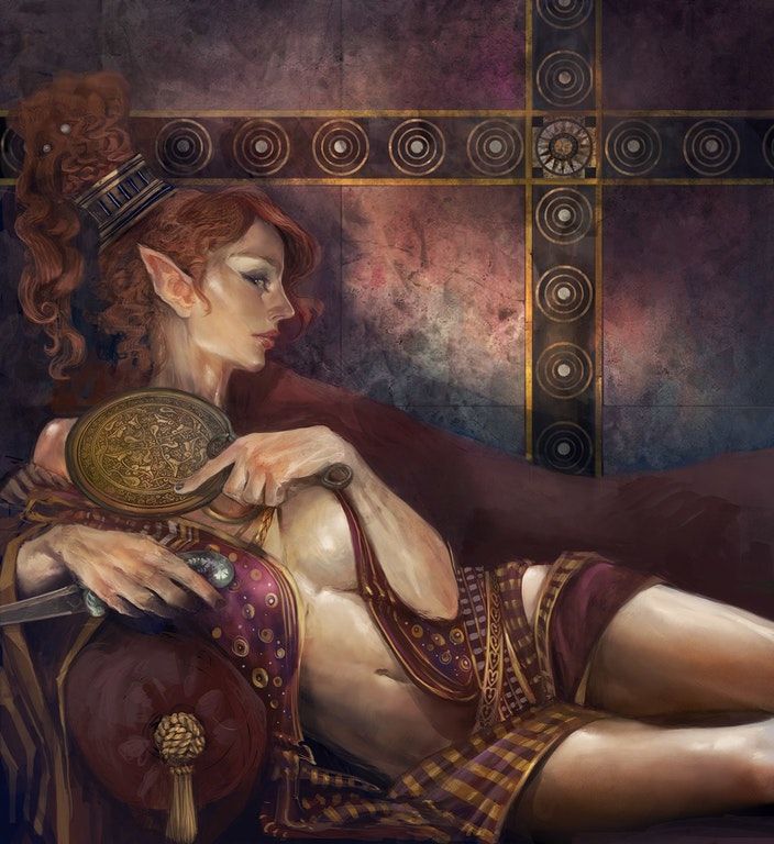The Roost is a gleaming piece of fine music, wine, and “interesting” company, at odds with it's surroundings in the Stygian Row. Unlike similar establishments, the Roost does not discriminate against satyrs, minotaurs, or centaurs, but does prefer to entertain rich clients and famous heroes. It is run by Leira, a beautiful Siren. Each of the escorts who work there claim to trace their lineage to a god or a nymph, so that clients can pick their preferred flavor of “immortality.”