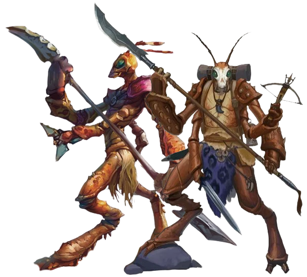 Los Thri-kreen tienen rasgos insectoides y dos pares de brazos. Su cuerpo está recubierto de quitina protectora. Pueden alterar la coloración de este caparazón para mimetizarse con su entorno natural.
