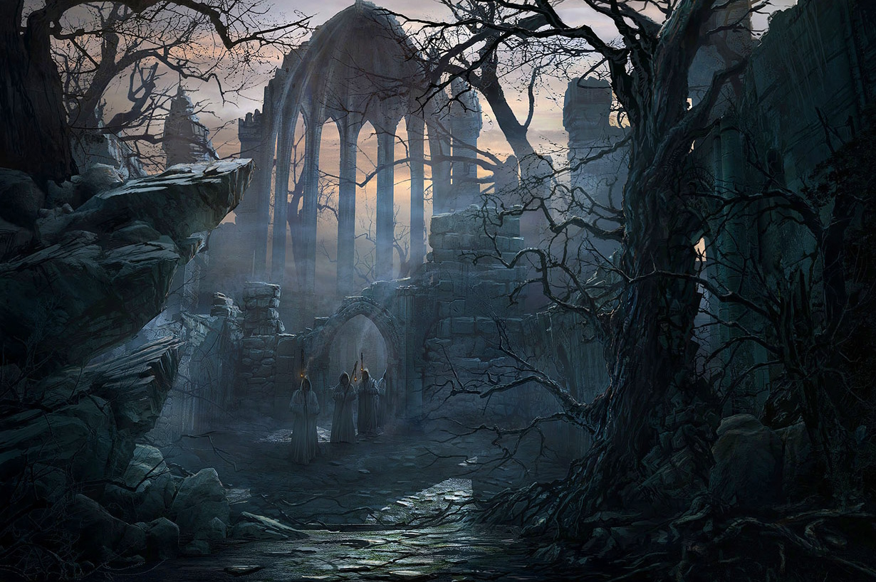 Sólo quedaban tres habitantes, Reidoth, un druida humano enjuto y de barba blanca que visitaba las ruinas de Arbotrueno de vez en cuando, evitando que nadie se adentrara en los peligros que acechaban dentro de las ruinas, mientras intentaba destruir un árbol parasitario y vampírico que crecía en su centro. Un dragón verde joven que había tomado las ruinas de Arbotrueno como su propia guarida, y miembros del Culto del Dragón que lo siguieron hasta aquí, en parte por devoción y en parte para ganarse su alianza.