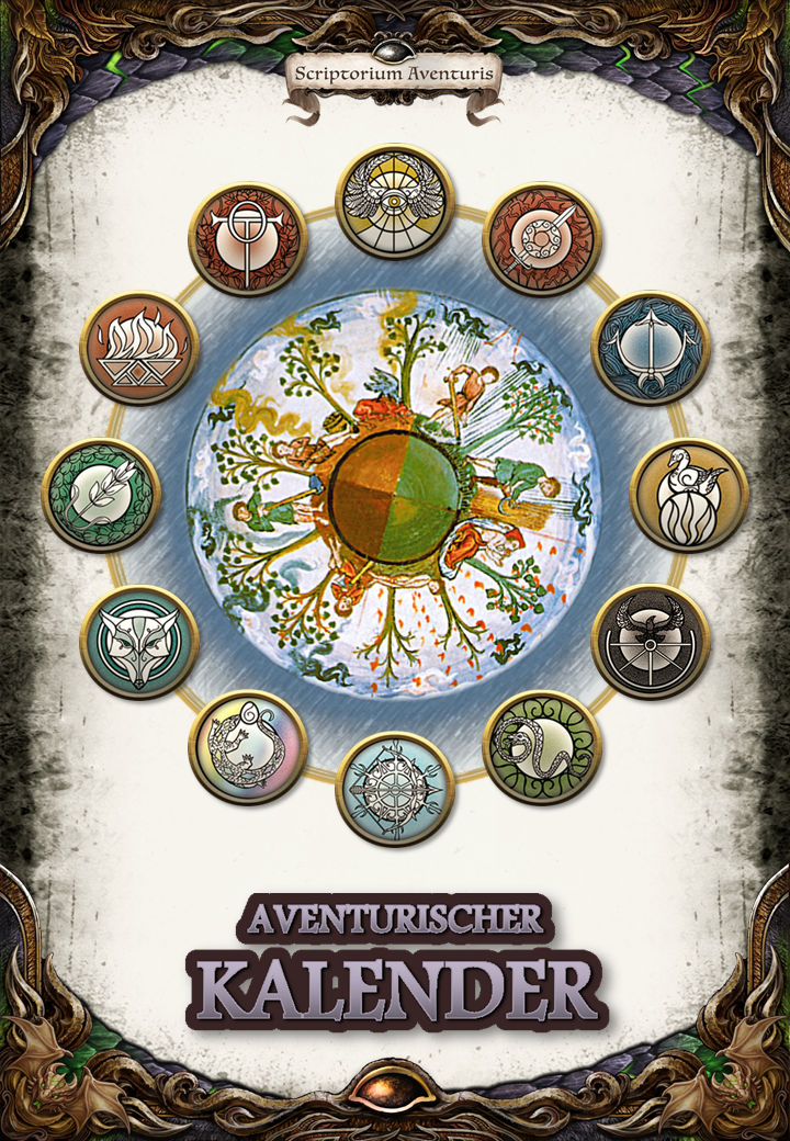 | Windstag | Erdstag | Markttag | Praiostag | Rohalstag | Feuertag | Wassertag |