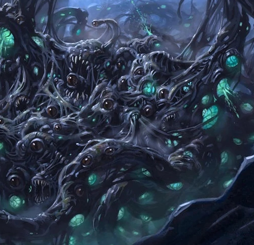 Ces tas de chair informes, aux yeux et aux bouches multiples, marmottent et marmonnent sans arrêt, dans une sorte de diarrhée verbale incompréhensible et très déstabilisante. Ils savent se tenir immobiles et silencieux, yeux et bouches fermés, pour mieux surprendre leurs proies, mais dès qu’ils se mettent en mouvement, l’infâme bruit reprend comme un million de conversations mêlées. Celui qui est surpris par un tel éclat soudain peut rapidement perdre ses moyens.
