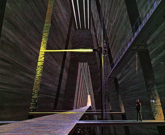 Several 'walkways' stick out into the tractor beam while others snake around it - this is a junction where many of those walkways cross.