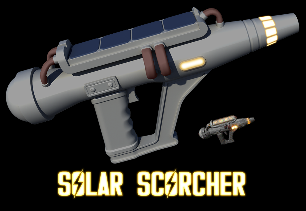 The Solar Scorcher is a special laser pistol that uses sunlight as its energy source.[1] In full daylight, the experimental photo-electric cells absorb light and allow the weapon to fire up to six shots, after which it must be reloaded.