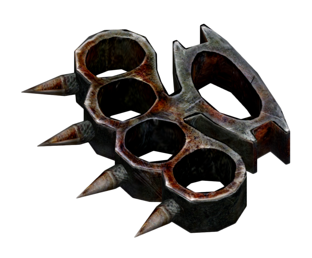 These have the same design as the brass knuckles, but are made from a darker metal and have spikes attached to each knuckle, enabling the knuckles to puncture and slash open the skin of an opponent.