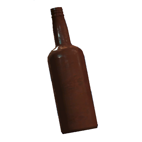The brown bottle is a classically shaped glass bottle. It has a round body with a long, gently narrowing neck. Word count: 20