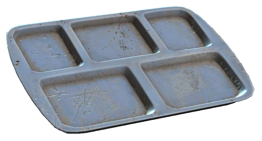 A light blue plastic tray that was made for use in cafeterias and mess halls in pre-War buildings Word count: 18